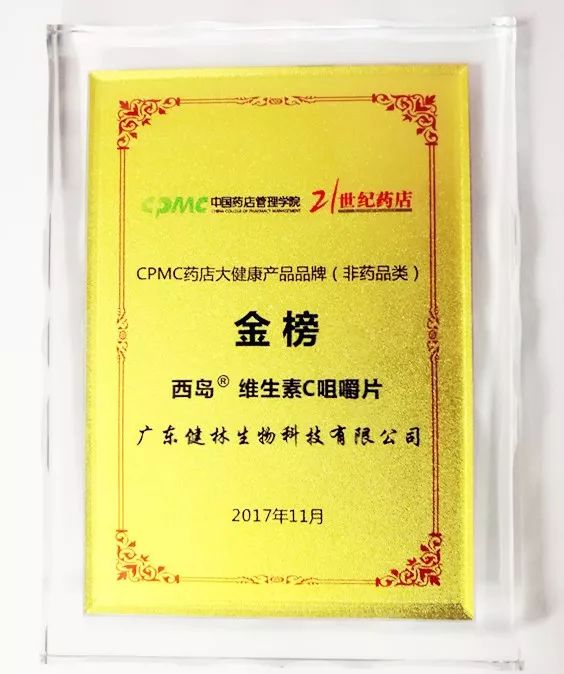 西岛维生素C咀嚼片荣登CPMC药店大健康产品品牌金榜