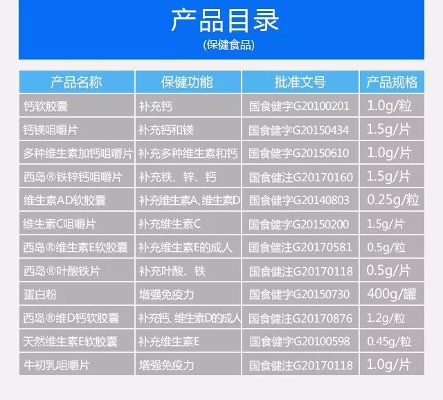 健林健康获得《国家食品药品监督管理总局》批准的保健食品批文10个,申报中的22 个,QS食品100余款。产品结构涵盖增强免疫、改善视力疲劳、调节血脂、增加骨密度、维生素、矿物质等功能。