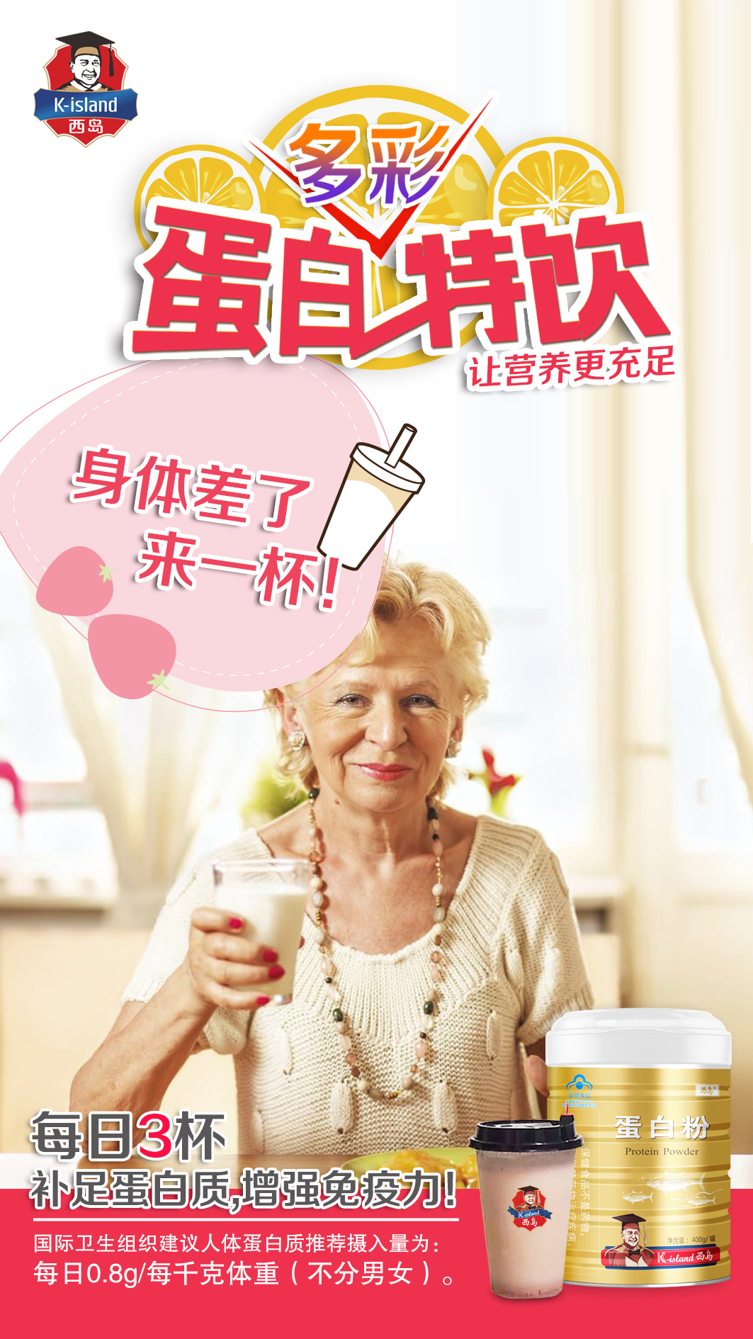 蛋白质,被称为“产热营养素”,为身体供给热能,制造抗体,增强免疫力!冬季御寒、强身健体首选营养!人人都需要,人手2提,健康温暖过冬!